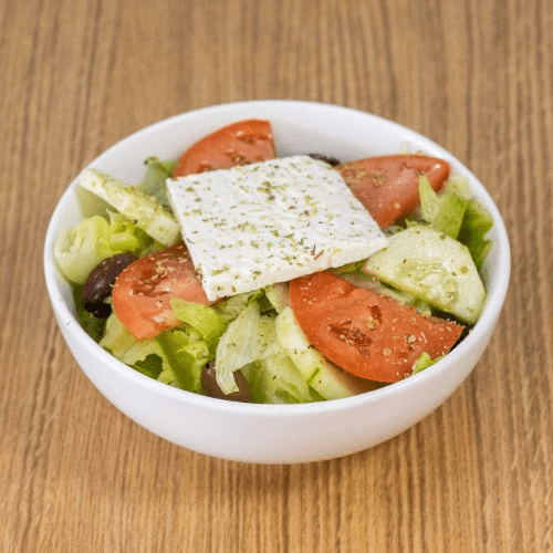 A Stick of pork souvlaki with fries or rice pilaff or lemon potatoes with side salad, pita and tzatziki dip. For a second stick add+ 5.00$